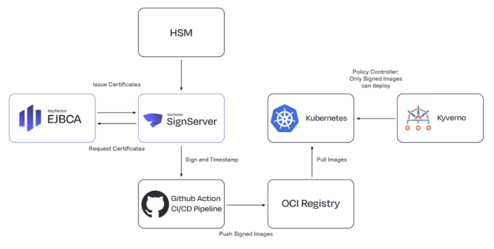 With Kubernetes policy engines, organizations can enforce rules such as: if this image wasn’t signed by our trusted PKI, it doesn’t run. This turns signing from a compliance checkbox into an active security control across the entire software supply chain.